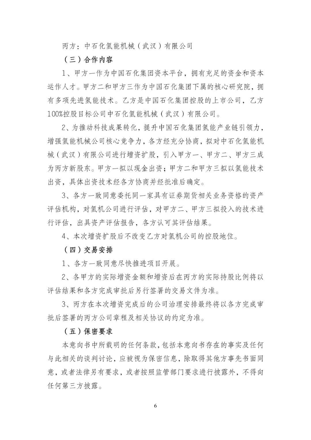 10月21日,中石化石油机械股份有限公司(以下简称“石化机械”)发布公告,石化机械与中国石化集团资本有限公司(简称“资本公司”)、中石化石油化工科学研究院有限公司(简称“石科院”)、中石化(大连)石油化工研究院有限公司(简称“大连院”)和中石化氢能机械(武汉)有限公司(简称“氢机公司”)签订《投资意向书》,资本公司、石科院和大连院拟以增资扩股方式向氢机公司投资。各方将以股权投资为基础,共同在技术、产业等方面开展合作。由于《投资意向书》的签署均为中石化集团下属主体,此次合作意向如实施将构成关联交易。